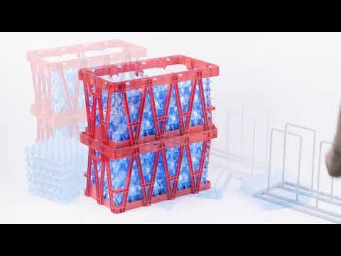 Een belangrijk punt is het ontwerp: de bodem van de krat is voorzien van speciale openingen waardoor een speciale metalen constructie kan worden geplaatst. Dit vergemakkelijkt het vullen en legen van de mand met eiertrays van elk 30 eieren.